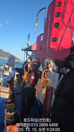 12월15일(월) 돌문어 철수조황 입니다 ^^주간문어.야간낙지 5인이상 무조건 출항주중 자리여유 많아요크라켄 잡으로 오세요주중 자리여유 많습니다 #돌문어(주간.야간)매일출조#섬치기#원도권출조#선상24예약가능(자리지정제)#밴드 빅이벤트진행중♡#사이드스러스터 장착#그늘막설치#1인1물칸배치#선상조황#고성#로드피싱#조황내용무.♡직접체험하세요^^♡#출항시간주간문어출항:06시00 입항: 15시00분야간낙지출항:18시00 입항: 01시00분●선비●주간문어선비:90,000원야간낙지선비:70,000원선사제공.식사.라면.야식.간식.음료.생수☆로드피싱 출조 정보☆예약문의:010-2808-6408(선장) 010-8721-0815(변여사)입금계좌농협302 1034 5286 01(변선인)*배타는곳 *●주소:경남 고성군 삼산면 판곡1길 247♡초보자분 낚시강습도 해드려요♡*신분증 꼭 지참하셔야 합니다*●로드피싱 전체조황보기●band.us/@roadfishing1*** 고성 로드피싱 예약 안내 ***예약문의 : 010-2808-6408오시는길 : 경남 고성군 삼산면 판곡1길 247홈페이지 : https://roadfishing.sunsang24.com/