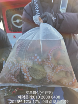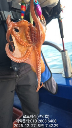 12월26일(금) 돌문어 철수조황 입니다 ^^내일(토) 8 자리여유 많이 있어요내일밤 야간낙지 선수모집중♡크라켄 잡으로 오세요주중 자리여유 많습니다 #돌문어(주간.야간)매일출조#섬치기#원도권출조#선상24예약가능(자리지정제)#밴드 빅이벤트진행중♡#사이드스러스터 장착#그늘막설치#1인1물칸배치#선상조황#고성#로드피싱#조황내용무.♡직접체험하세요^^♡#출항시간주간문어출항:06시00 입항: 15시00분야간낙지출항:18시00 입항: 01시00분●선비●주간문어선비:90,000원야간낙지선비:70,000원선사제공.식사.라면.야식.간식.음료.생수☆로드피싱 출조 정보☆예약문의:010-2808-6408(선장) 010-8721-0815(변여사)입금계좌농협302 1034 5286 01(변선인)*배타는곳 *●주소:경남 고성군 삼산면 판곡1길 247♡초보자분 낚시강습도 해드려요♡*신분증 꼭 지참하셔야 합니다*●로드피싱 전체조황보기●band.us/@roadfishing1*** 고성 로드피싱 예약 안내 ***예약문의 : 010-2808-6408오시는길 : 경남 고성군 삼산면 판곡1길 247홈페이지 : https://roadfishing.sunsang24.com/